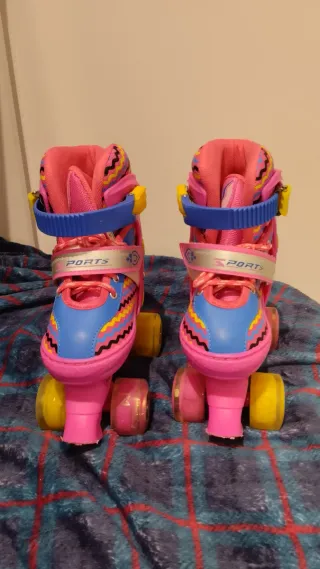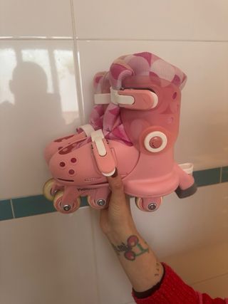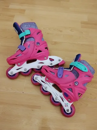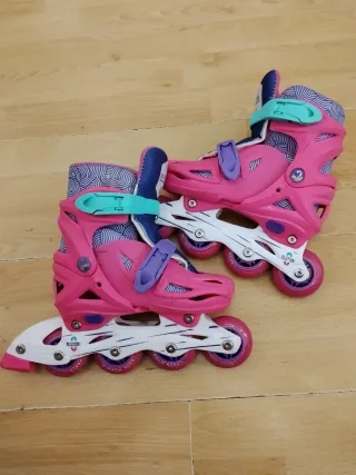 Pattini in linea per ragazze - Regolabili 27-32 - NUOVI Pattini in linea regolabili dalla taglia 27 alla 32, colore rosa, perfetti per le ragazze che stanno imparando a pattinare. Sono nuovi e non aperti, con borsa da trasporto e cerniera per riporre gli accessori. Caratteristiche: Taglia regolabile: 27-32 Colore: rosa Include borsa da trasporto Con cerniera nella borsa Perfetti per iniziare a pattinare