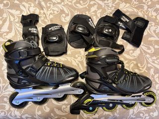 Set di pattini inline marca Tijuana, taglia 42, in colore nero e grigio con dettagli in giallo. Include protezioni. Utilizzati una sola volta. Visibile nella foto. Vendo tutto il pacchetto.