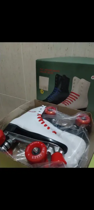 In vendita pattini bianchi a 4 ruote, utilizzo singolo. Taglia 37