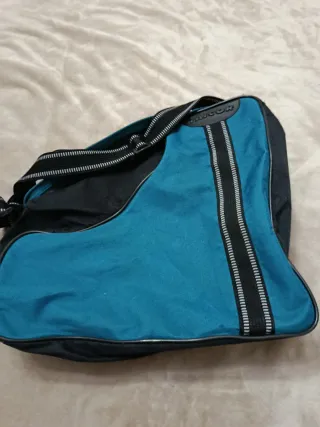 Borsa del marchio Taicor, ideale per trasportare pattini. Colore blu. Cinturino di trasporto nero con dettagli argentati.