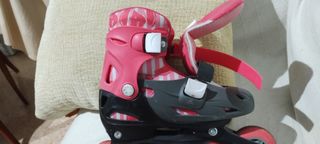 Pattini in linea per bambina, con design in rosa e grigio. Sono regolabili per adattarsi alla crescita. - Chiusura con velcro e fibbia. - Ruote di colore rosa. - Taglia regolabile da 30 a 33.