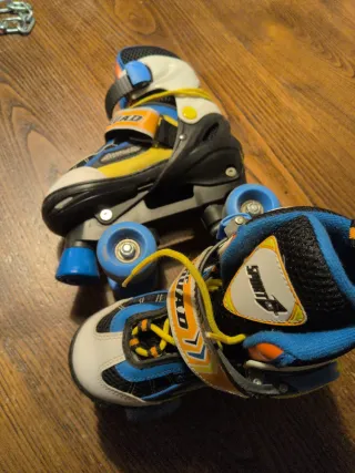 Pattini a rotelle per bambino, ideali per divertirsi all'aria aperta. - Design sportivo con colori vivaci. - Chiusura con velcro e lacci. - Ruote resistenti per un buon scorrimento. Usato pochissimo, freno appena usurato