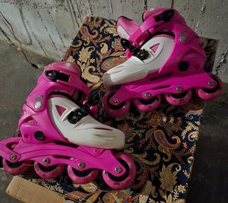 Pattini a rotelle rosa con dettagli floreali, ideali per i più piccoli.Calzano piedi 35 36 37 38 - Chiusura con velcro. - Design colorato e divertente. - Ruote resistenti per un buon scorrimento.