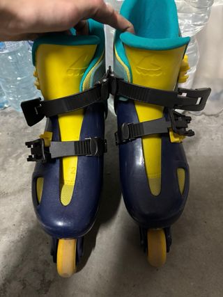Pattini a rotelle Oxelo, ideali per bambini e ragazzi. Il design è moderno e accattivante. TAGLIA:38-41 come si può vedere dall' ultima foto. - Colore blu, turchese e nero. - Chiusura con velcro e lacci. - Sistema di micro-regolazione per una calzata personalizzata. - Telaio in alluminio resistente.