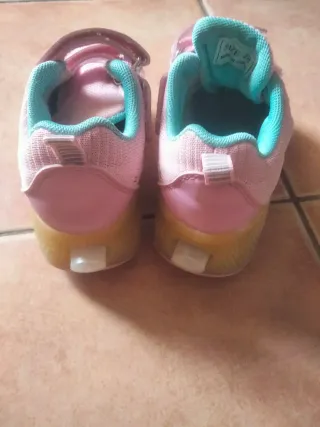 Scarpe con rotelle per bambini, colore rosa con dettagli turchesi. - Chiusura a strappo. - Suola con rotelle. - Taglia 26.