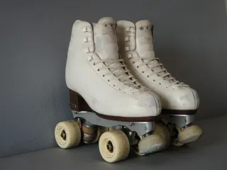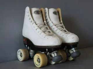 Pattini a rotelle bianchi con lacci rosa, taglia 35. Sono quelli professionali, non sono quelli che si trovano nei negozi, sono stati usati molto per gli allenamenti, gare e saggi. Li cambiamo solo per cambio numero, prezzo da nuovo 180€ Le condizioni ovviamente sono discrete, ma sono ancora buoni x gli allenamenti o per il tempo libero.