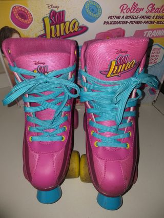 Pattini a rotelle Soy Luna. Usati pochissimo come nuovi. Completi di protezioni ginocchio gomito e mani.taglia 34-35 ben conservati in scatola originale