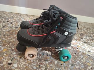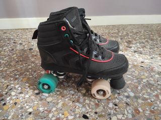 Pattini usati ma in ottime condizioni. Visibili segni di usura nelle foto. Le ruote girano perfettamente e senza "scricchiolare" o fare rumori. Costo nuovi: 55€ Possibile acquisto tramite spedizione o ritiro a mano a Roma (fermata Metro A - Furio Camillo) Per qualsiasi informazione o foto aggiuntiva non esitate a contattarmi, vi risponderò quanto prima!