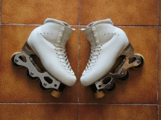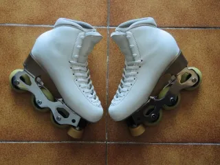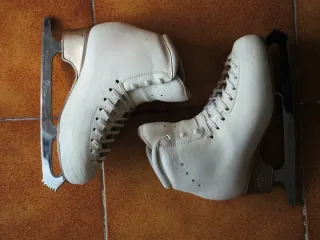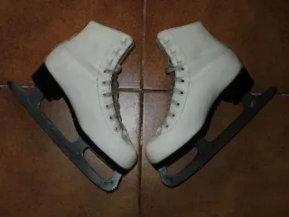 Pattini da ghiaccio artistico misura 34. - Scarponi bianchi. - Lame in metallo.
