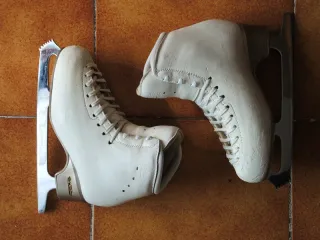 Coppia di pattini da ghiaccio da donna. - Colore beige - Lacci per chiusura - Lama in metallo