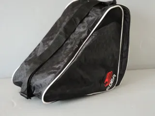 Set di accessori Edea per pattinaggio artistico. - Borsa a tracolla nera con logo Edea. - Porta ruote nero con dettagli rossi e logo Edea. - Spinner nero con design grafico rosso e logo Edea. - Edea Roller Tang