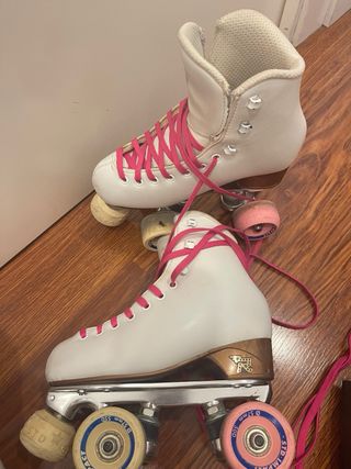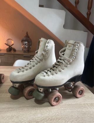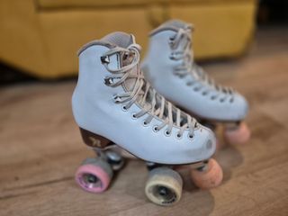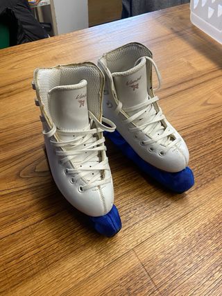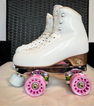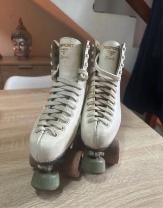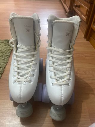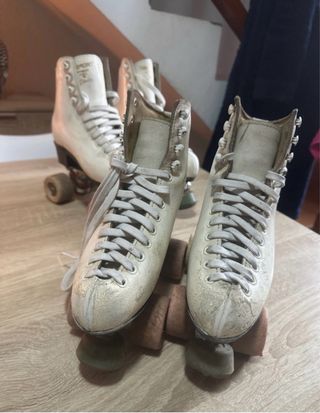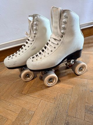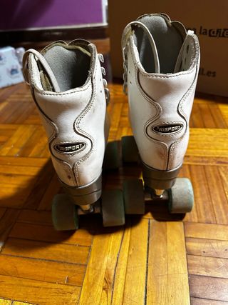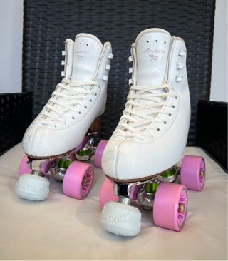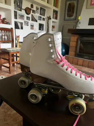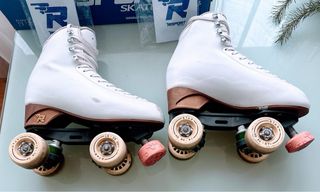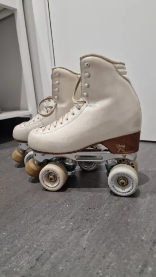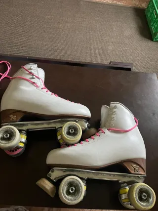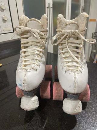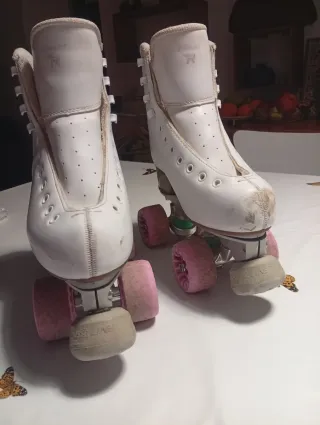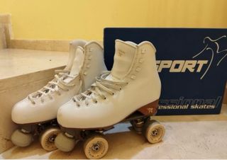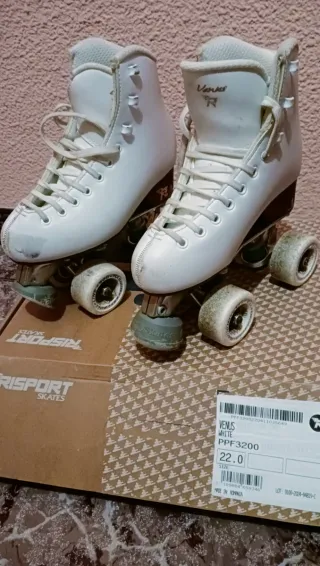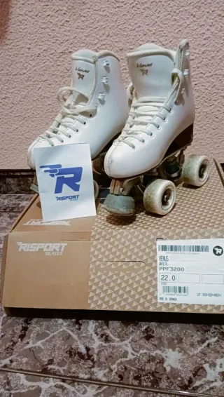 Pattini Venus della marca Risport in perfette condizioni. Solo un piccolo graffio sulla parte frontale, sempre con coperture e usati solo un giorno a settimana per attività extrascolastiche. Corrisponde a una taglia 38-39.