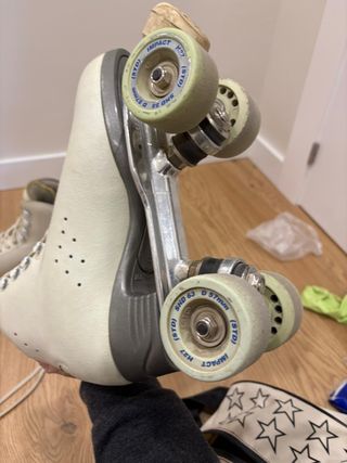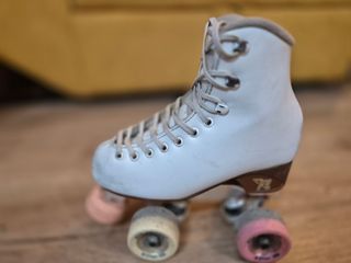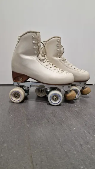 Pattini della marca Risport, modello Siria. - Taglia 37 (per 36,5-37,5). - Colore bianco. - Ideale per livello iniziale/intermedio senza dover investire in nuovi pattini. - Ruote con usura ma funzionali. - Freno con usura ma funzionale.