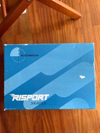 Pattini artistici della marca Risport. Senza freno per pattinaggio scolastico. Presenta alcune abrasioni come mostrato nelle foto. Taglia 37. Include borsa per il trasporto.