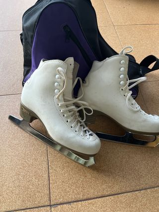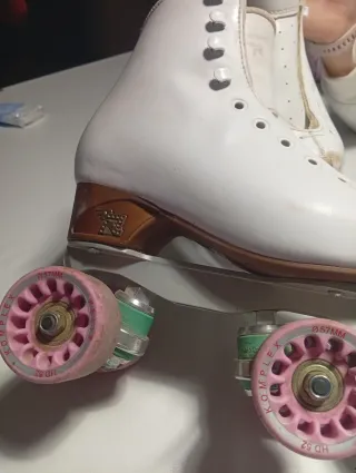 Vendo pattini da pattinaggio artistico Risport Étoile, taglia 36, usati, ideali per principianti e livello base/intermedio. ✨ Modello Étoile, molto utilizzato nelle scuole di pattinaggio per il suo equilibrio tra comfort e sostegno. 🛼 Include scarpa + piastra + ruote. 🔎 Stato: • Presentano segni estetici di normale utilizzo (vedi foto) • Strutturalmente buono, completamente funzionale • Le ruote mostrano usura normale per l'uso. Perfetti per: ✔️ Iniziare il pattinaggio artistico ✔️ Allenamenti ✔️ Secondo paio ✔️ Non investire in nuovi pattini mentre il piede continua a crescere