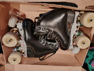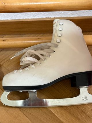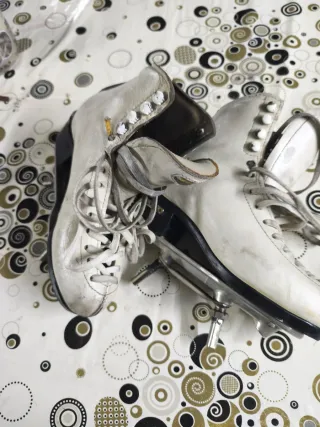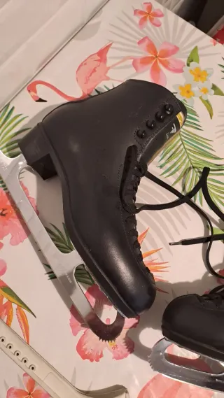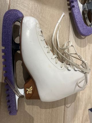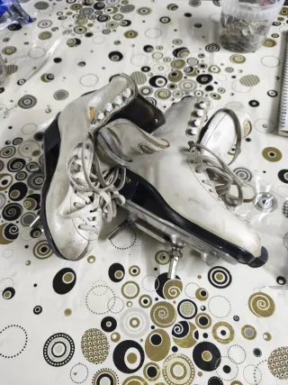 Vendo pattini da pattinaggio artistico Risport Venus taglia 260, con placca Elyo STD taglia 15. Sono stati usati solo una stagione, quindi l'interno è rigido e in ottime condizioni, mantenendo perfettamente la tenuta del piede. L'esterno presenta lievi segni normali di utilizzo, puramente estetici, ma è strutturalmente perfetto. ⚠️ Importante: uno dei lacci è rotto e dovrebbe essere sostituito (dettaglio facile ed economico). Ideali per pattinatrici di livello principiante-intermedio che cercano materiale di qualità senza pagare di nuovo. Si vendono come si vedono nelle foto. Per qualsiasi domanda, scrivimi 😊
