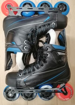 Pattini da hockey inline usati un paio di volte, montano ruote usate una dozzina di volte Labeda Gripper Soft, calzano la misura europea 45. - Taglia 9.5 - Modello Vapor X70R - Marca Bauer
