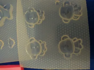 Set di stampi in silicone per creare oggetti in resina. - Stampi con forme diverse: pesciolino, orsetti, cuori, luna e fiocco. - Materiale: silicone flessibile.