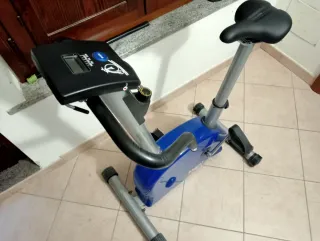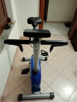 Ciclette da casa di colore blu, ideale per allenamenti domestici. - Struttura in metallo. - Sedile regolabile. - Manubrio imbottito.