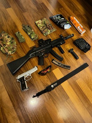 Kit completo per s0ft@air con accessori vari. - Caricatore. x2 - Pallini biodegradabili. - Guanti tattici. - Occhiali protettivi. - Impugnatura frontale. x2 - Tracolla. TUTTO FUNZIONANTE, scrivi in privato per informazioni aggiuntive
