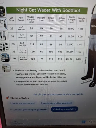 Scafandro da pesca marca Night Cat, ideale per la pesca. Eu 33 . Rango età 8-9 - Stivali impermeabili. - Bretelle regolabili. - Tasca frontale.