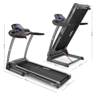 Tapis roulant Diadora Runner 6.0, ideale per allenamenti a casa. - Dimensioni nastro: 140 cm x 48 cm. - Dimensioni totali: 168 cm x 76 cm. - Altezza: 132 cm. - Altezza da piegato: 146 cm. - Larghezza da piegato: 103 cm.
