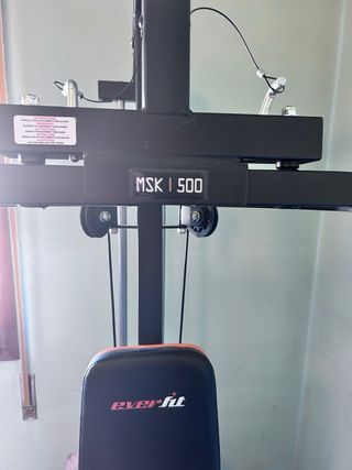 Palestra multifunzione per allenamento completo. - Struttura robusta in metallo. - Sedile imbottito. - Pesi inclusi. Pacco pesi 45kg, sistema di carrucole e pulegge con cuscinetti a sfera. Barra tricipiti e cavigliera per trazioni incluse. Funzioni: tricipiti, crunch addominale, estensione delle gambe, crunch AB a trazione alta, push-down per tricipiti, lat pull down, bicipiti, pettorale fly, pressa anteriore, calcio alle gambe, pressa per le spalle sedute, fila in posizione verticale, arricciatura delle gambe in piedi, arricciatura del braccio.