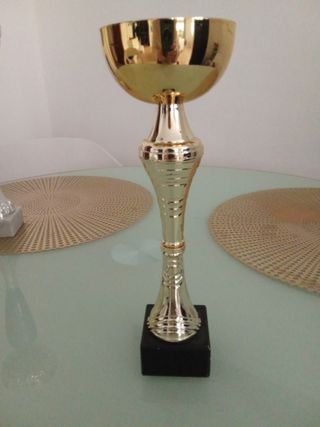 Coppa mini di colore oro, perfetta per premiazioni o come oggetto decorativo. - Materiale: metallo dorato - Base: nera marmo Altezza 25 cm