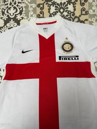 Vendo maglia storica dell'Inter, stagione del Centenario 2007-2008, modello Away (bianca con croce rossa di Milano). * Marca: Nike (Originale 100%, vedi etichette). * Taglia: M. * Condizioni: Ottime. Tessuto perfetto, loghi integri, etichette presenti. Nessun difetto evidente. * Particolarità: Dettaglio 1908-2008 sul retro collo. Pezzo da collezione sempre più raro e costoso. Prezzo in linea con il valore di mercato attuale per le condizioni eccellenti. Disponibile per spedizione o consegna a mano. Astenersi offerte ridicole, conosco il valore dell'oggetto. #Inter #Calcio #Vintage #Collezionismo #Nike