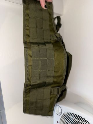 Cinturone tattico in tessuto resistente, ideale per softair o attività all'aperto. Dotato di bretelle regolabili per un maggiore comfort e supporto. - Colore verde militare. - Chiusura a sgancio rapido. - Bretelle imbottite e regolabili.