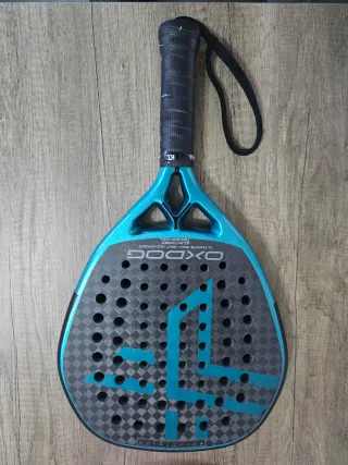 Racchetta da padel Oxdog Ultimate Pro Light, modello 2025. Design moderno con finitura in carbonio. - Colore: Blu e nero. - Materiale: Carbonio. - Laccetto di sicurezza incluso. Pala in condizioni perfette, con solo 6 partite, tenuta sempre con overgrip e copritesta.