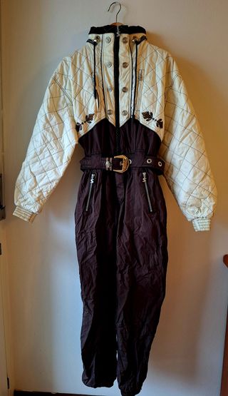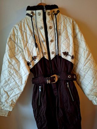 Tuta da sci originale Sportalm Kitzbühel, taglia 38, modello vintage anni ’80/’90. In condizioni impeccabili, senza difetti, macchie o segni di usura. Materiale caldo e resistente, dettagli tipici Sportalm, zip funzionanti, cintura originale. Rarissima da trovare in queste condizioni, ideale sia per sci che per collezionisti di vintage tecnico. Taglia: 38 Vestibilità: regolare Colori: panna + marrone Condizioni: pari al nuovo Spedisco subito, prezzo leggermente trattabile.
