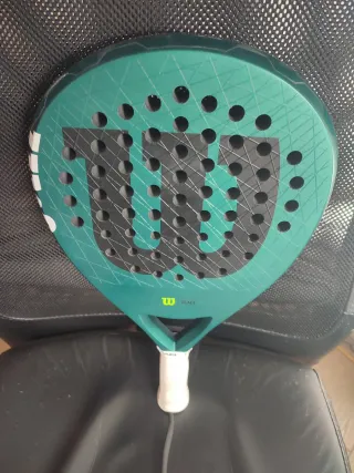 Due racchette da padel Wilson Bela Pro v3. 1- Nuova, con due partite. 2- Usata. Funziona perfettamente. - Colore verde azzurro. - Design con il logo di Wilson. - Impugnatura bianca.
