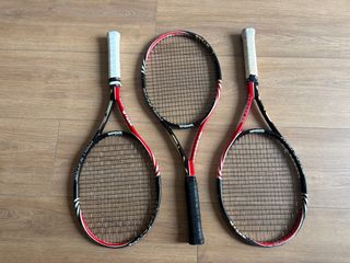 Tre racchette da tennis in perfetto stato, pronte per giocare. Prezzo per racchetta 15 euro, le 3 costerebbero 25 euro. - Racchetta Dunlop Pro Laser. - Racchetta Wilson. - Racchetta Wilson. - Custodia Dunlop Pro Laser inclusa.