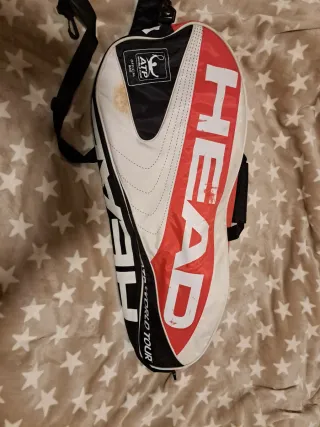 Custodia per racchette da tennis del marchio HEAD, modello ATP World Tour. Design in bianco, nero e rosso. Logo ufficiale ATP World Tour.