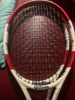 Set di racchette da tennis Wilson. - Modello BLX. - Struttura in grafite. - Design bianco e rosso con dettagli dorati.