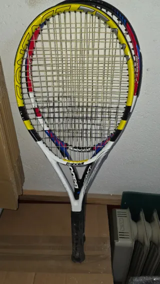 Include una custodia. Due racchette da tennis, una del marchio Artengo e l'altra del marchio Nadal. - Racchetta Artengo con dettagli in nero e giallo. - Racchetta Nadal con dettagli in nero e giallo.