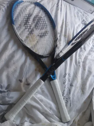 In vendita racchette da tennis con custodia. Quella con la custodia blu ha la cerniera rotta. Include: - Racchette da tennis. - Custodia per il trasporto. I manici delle racchette sono molto deteriorati dall'uso.