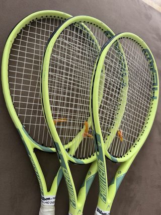 Set di tre racchette Head. Colore verde lime. Impugnature con overgrip bianco.