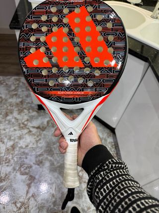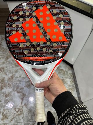 Set di racchette da padel per bambini Adidas. - Modello: Adipower Junior. (Uso molto limitato) - Design con le iconiche 3 strisce Adidas in arancione. - Struttura con rinforzo strutturale. - Racchetta Bullapadel vertex 3 junior