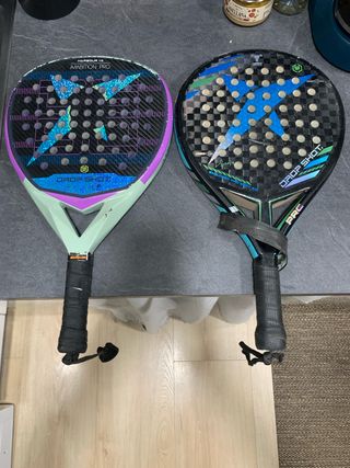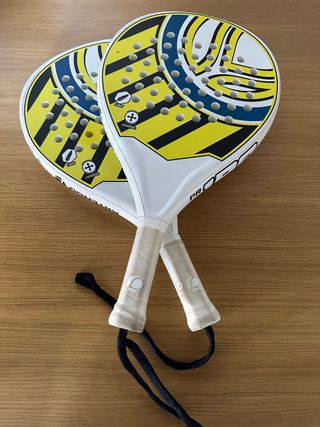 Due racchette da padel, una della marca Middlemoon e l'altra Bullpadel. Le racchette presentano alcuni graffi come si vede nelle foto, non hanno alcun colpo, è necessario cambiare l'overgrip, sono in cattive condizioni e anche per igiene.