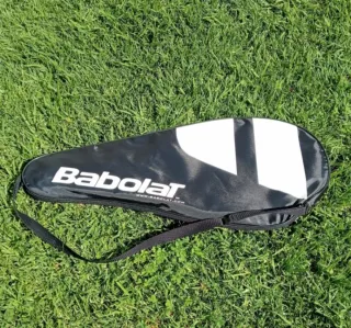 Fodera per racchetta da tennis del marchio Babolat. Design moderno e funzionale, in colore nero con dettagli bianchi. 🎾🥎 È un accessorio di protezione per la racchetta. Materiale resistente e di alta qualità. Ideale per trasportare la racchetta con stile e protezione. - Chiusura con cerniera. - Logo di Babolat. - Cinturino regolabile per il trasporto a spalla. - Sito web del marchio stampato nella parte inferiore. Totalmente in perfetto stato, mai usata.