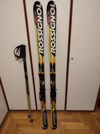 Vendo set Sci Rossignol 9X Oversize completo di attacchi e racchette. Ottime condizione degli sci e delle lamine, usati pochissimo e ben conservati. Dimensioni sci: altezza 166 cm larghezza max 11 cm altezza racchette: 121 cm