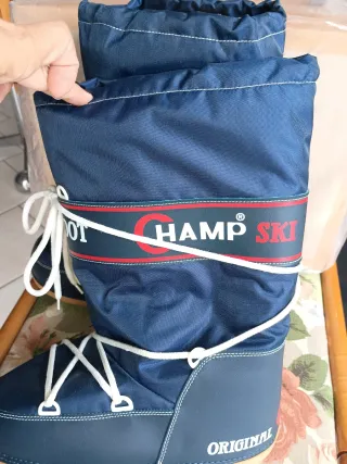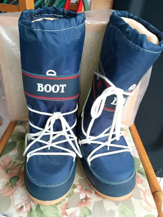 Doposci unisex in tessuto blu con lacci bianchi. - Taglia 41/43. - Design alto. - Suola in gomma.
