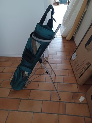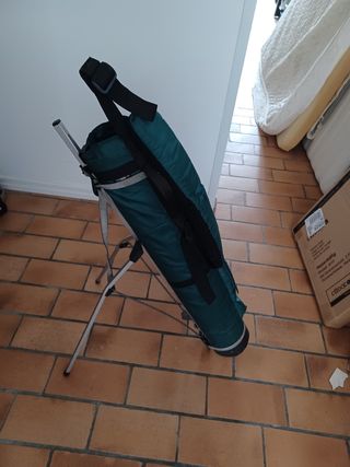 Treppiede da Golf in buone condizioni con cappuccio copri mazze e cintura, solo un piccolo buco sulla retina esterna , vedi foto