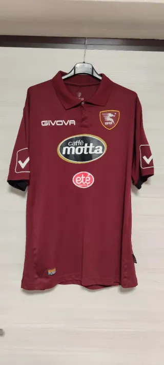 Maglia ufficiale Salernitana modello player Taglia L - Colore bordeaux. - Logo GIVOVA sul petto. - Sponsor Caffè Motta e Ete. - Dettagli a contrasto sulle maniche.