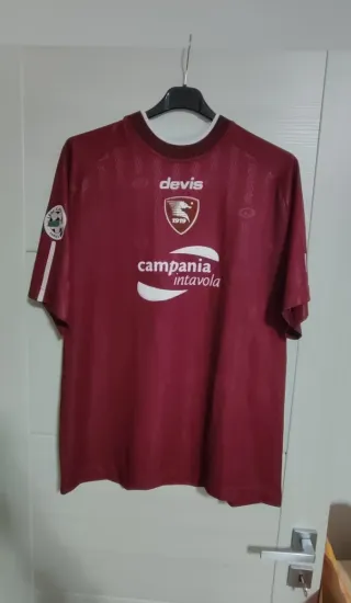 Maglia da calcio Salernitana della stagione 2004/05 provenienza spogliatoio Maglia rara poiché in quella stagione era molto utilizzata quella con sponsor Centrale del Latte o caffè Motta Giocatore TERNI n.17 Ex calcio Monza Solbiatese Corsico Varese Como Ternana Salernitana Avellino Pro Patria Sansovino Attualmente allenatore in seconda Juventus next get Taglia XL Sponsor tecnico Devis. Sponsor principale Campania In tavola. Patch Lega Calcio Serie B.