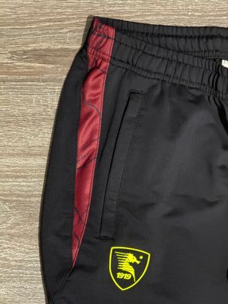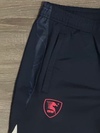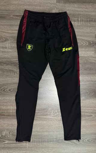 Pantalone da tuta da allenamento del Salernitana. - Colore nero con inserti bordeaux. - Logo Zeus e stemma del club. - Taglia L.