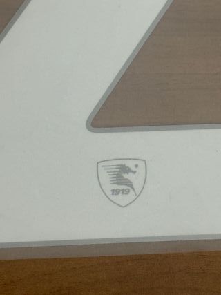 Numero 2 ufficiale della Salernitana per la Serie A, con stemma e anno 1919. - Colore bianco con bordo grigio. - Stemma societario presente.