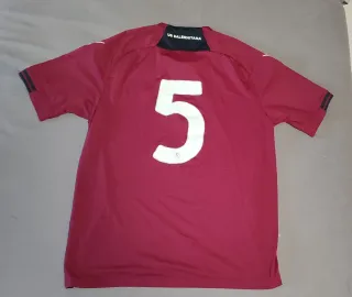 Maglia da calcio originale Salernitana. Con n.5 anch'esso originale Taglia L - Colore bordeaux con dettagli neri. - Logo Zeus sul petto. - Stemma della squadra con l'anno 1919. - Tecnologia ZetaKnit. Piccolo difetto visibile nella terza foto